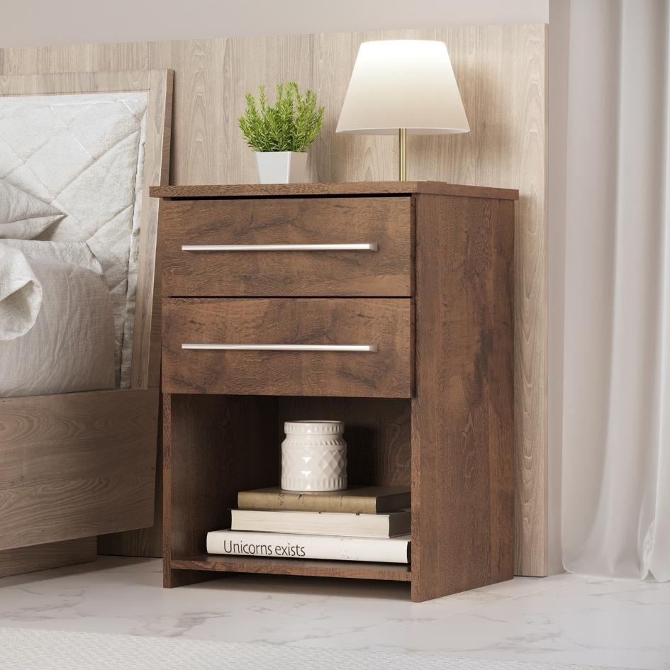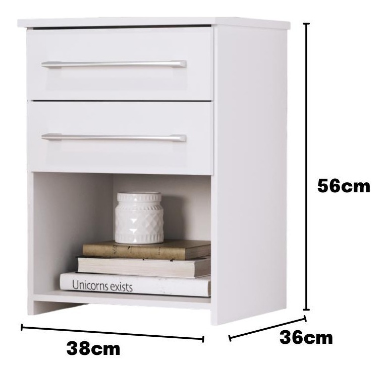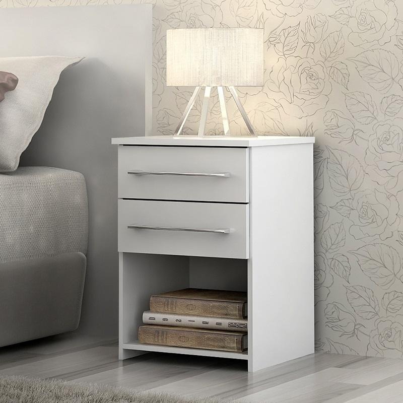MESA DE CABECEIRA BRUNA | Com 2 gavetas em corrediças metálicas e espaço para livros, a mesa de cabeceira Bruna contribui para a organização do seu quarto.